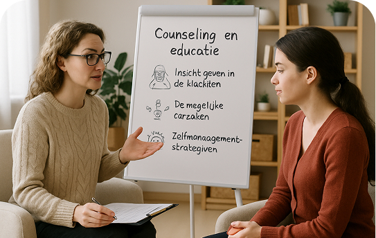 Inzicht geven in de klachten, de mogelijke oorzaken en zelfmanagementstrategieën