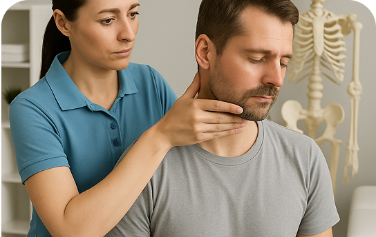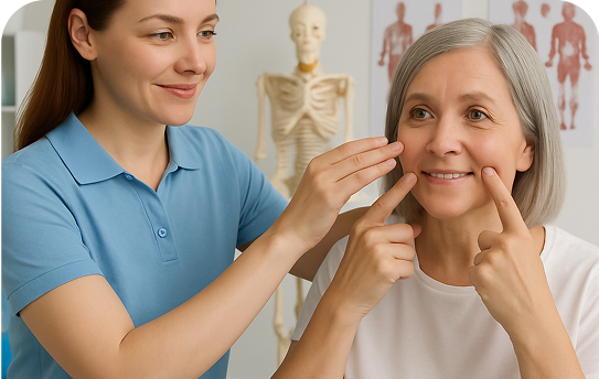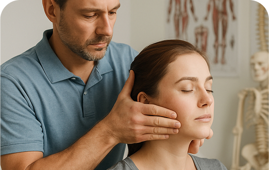 Mobilisaties en andere hands-on technieken gericht op het verbeteren van functie en het verminderen van pijn in het kaak-, hoofd-, nek- en schoudergebied.